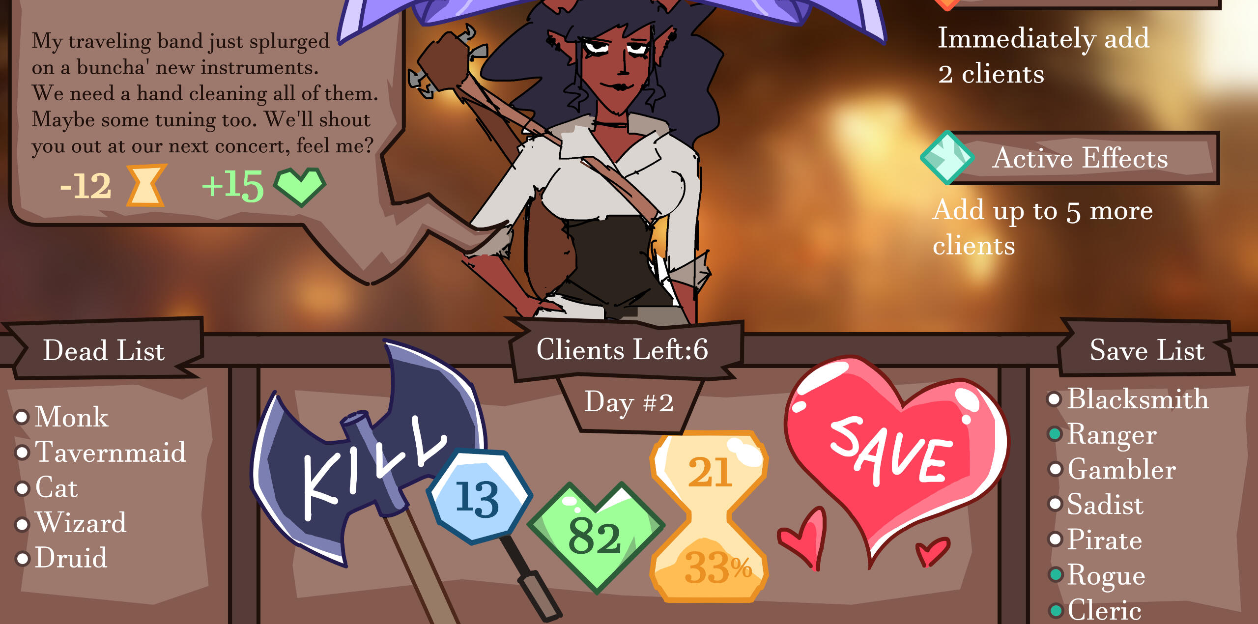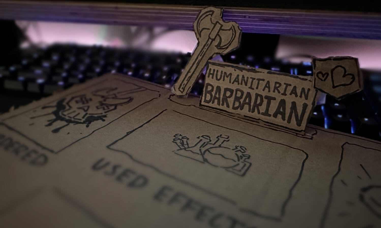 An analogue board / card game where you play as a former ax-murderer turning over a new leaf, split between the joys of a normal, moral life and the wonderful thrill of violence. I'm currently in the process of developing a digital version of the game in Unity. You can read the ruleset here.