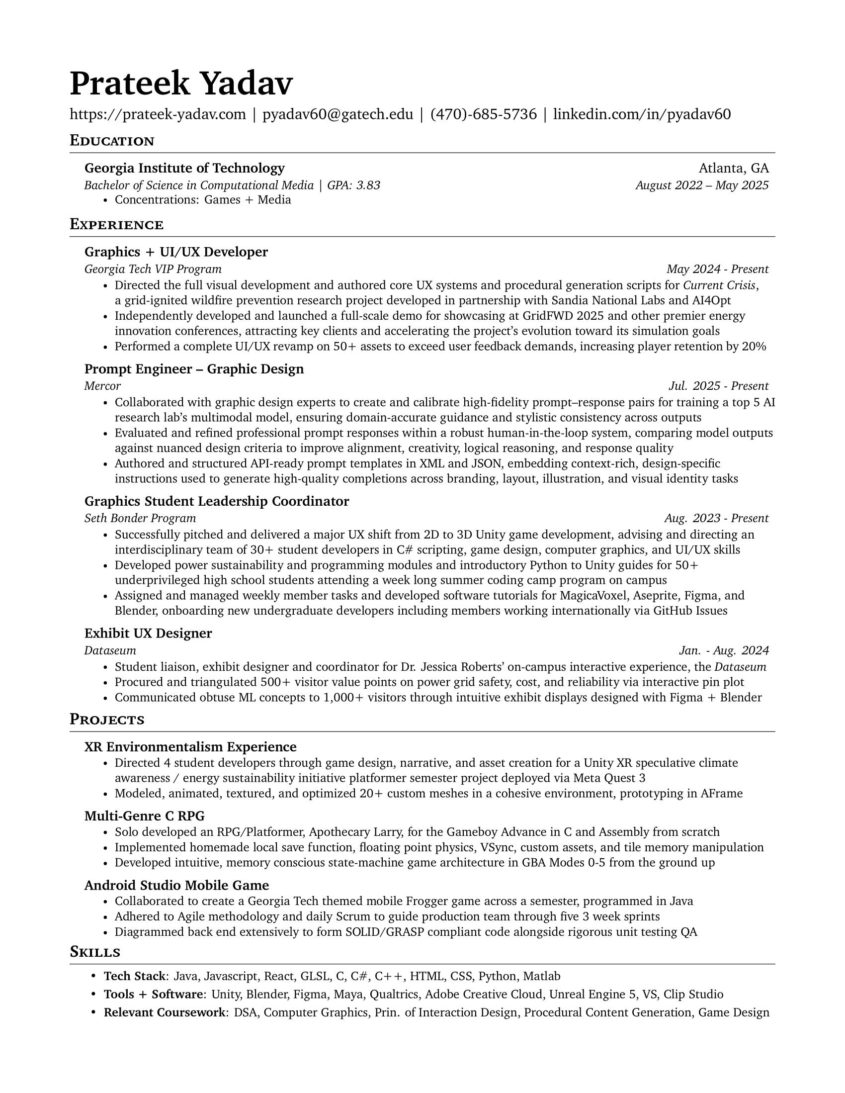 I'm currently working for the Georgia Tech Research Institute while I pursue UI/UX, product design, and both 2D + 3D art positions, ideally within the games industry.Beyond work, I unsurprisingly enjoy gaming and drawing in my free time. My favorites include Dungeons and Dragons, Silksong, and Hades II.